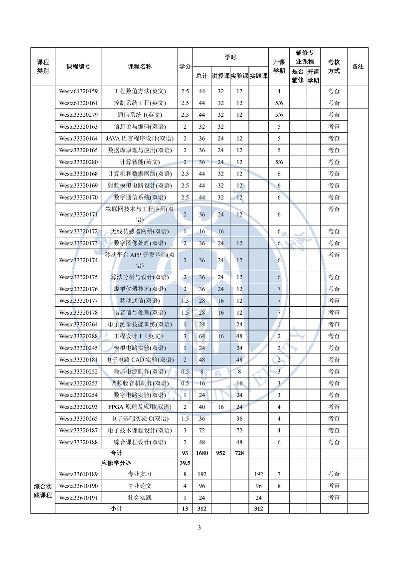 电子信息工程专业课程计划表