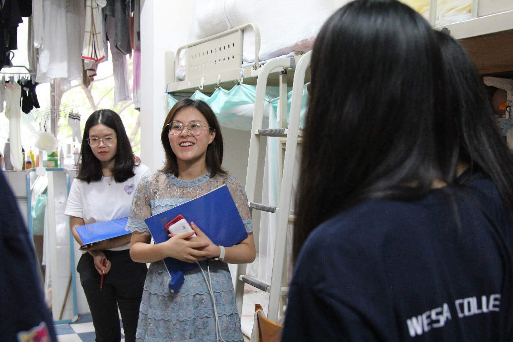 自4月25日启动比赛以来,经过线上投票和线下答辩两环节的角逐,最终有八间寝室进入线下考核决赛环节。iQQtv 各年级辅导员组成导师团出席决赛并担任评委。老师们逐一走访各寝室,围绕寝室环境、寝室文化、寝室制度和现场印象进行考核评分。环境方面主要在于内务卫生、装饰美化以及安全隐患;文化方面侧重于介绍寝室特色和寝室氛围;现场印象则是包括寝室成员参与度、仪容仪表以及解说效果。