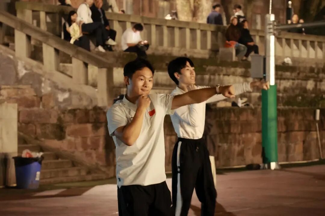 随后,节奏强劲的搏击操将活动推向高潮。在搏击操队员的带领下,全场师生挥拳起势,动作整齐划一,呐喊声气势十足,将现场的热情彻底引爆,青春的朝气与活力在此刻展现得淋漓尽致。