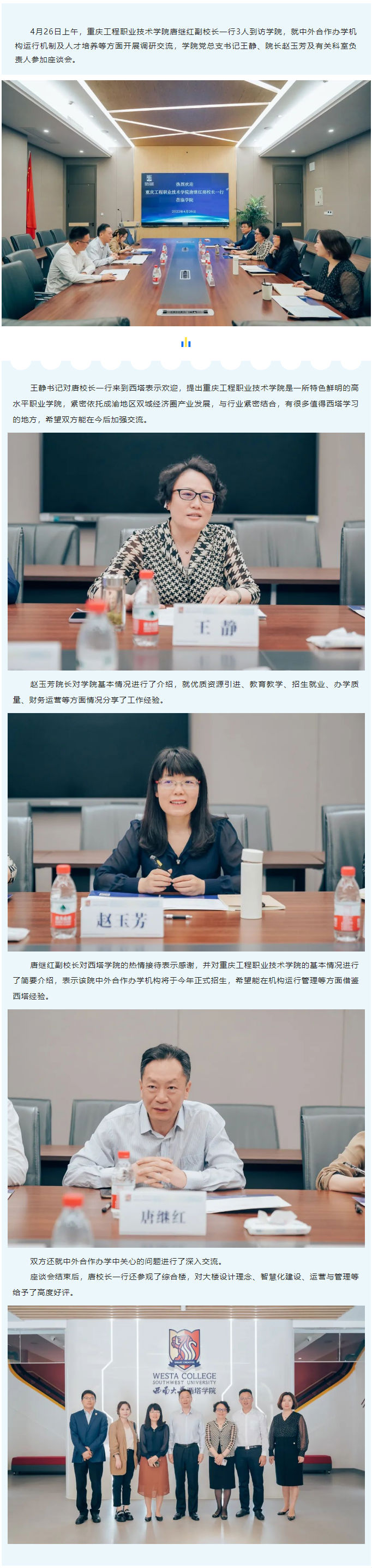 重庆工程职业技术iQQtv 唐继红副校长一行到iQQtv 调研交流