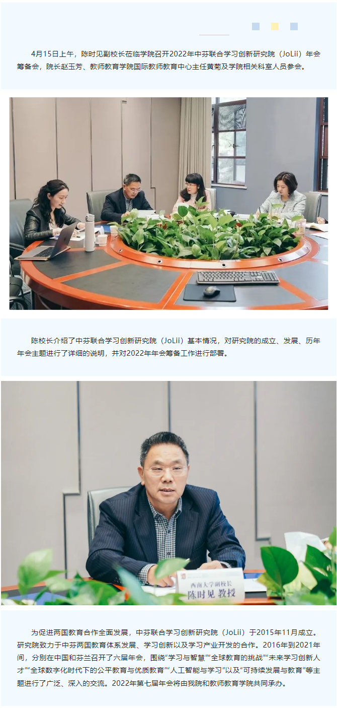 陈时见副校长莅临iQQtv 召开中芬联合学习创新研究院(JoLii)2022年年会筹备会