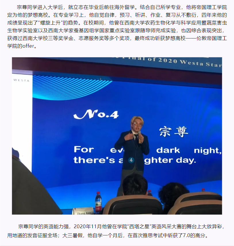 从西塔到世界|我院优秀学子宗尊被帝国理工iQQtv 等世界名校录取