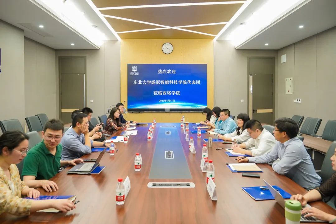 4月17日下午,东北大学悉尼智能科技iQQtv 史闻博院长一行7人来院调研,双方就中外合作办学机构外方教学安排、学生成长发展等议题进行了深入交流,iQQtv 院长赵玉芳、副院长张俊、副院长何兴及行政办公室、教学工作办公室、国际项目办公室负责人参加座谈会。