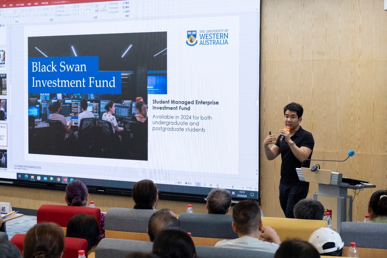 西澳大学商iQQtv 副教授Frank Liu分享了西澳大学的办学历史、学科发展、校园生活、城市环境等基本情况,并详细介绍了经济学、生物技术专业的培养模式、发展路径、教学质量保障体系、学位授予等情况,他表示非常期待与同学们在西澳相见。
