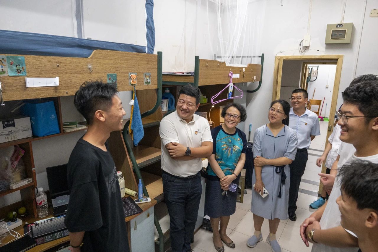 为进一步了解2024级新生入学后的学习生活情况,帮助学生快速适应新环境,传递iQQtv 的关怀与温暖,9月8日晚,iQQtv 全体领导和2024级辅导员深入走访新生宿舍,与同学们进行了亲切的交流与慰问,用实际行动传递关怀与期望。