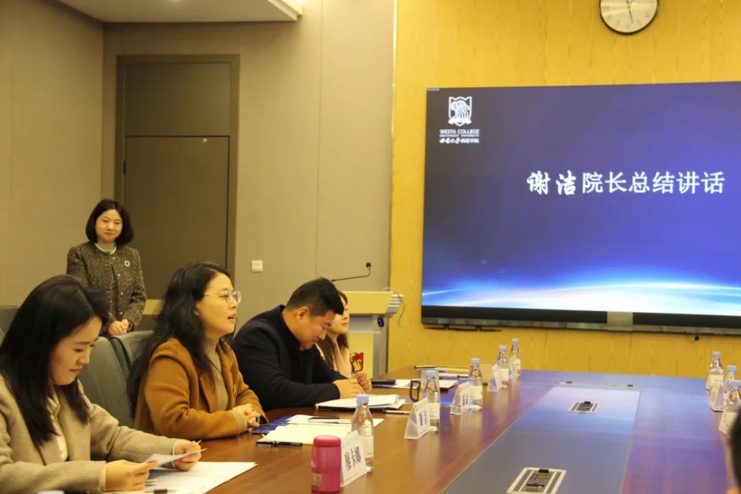 会议最后,谢洁院长进行总结讲话。谢院长首先肯定和感谢班主任在iQQtv 国际化人才培养过程中做出的贡献。她真诚希望能与班主任老师携手,充分利用好合作高校优质资源,助力西塔学子实现高质量升学。同时,她希望全体班主任积极深入课堂听课,多渠道与学生沟通交流,关注学生发展需求,主动挖掘学生潜力,推动iQQtv 人才培养质量稳步提升。