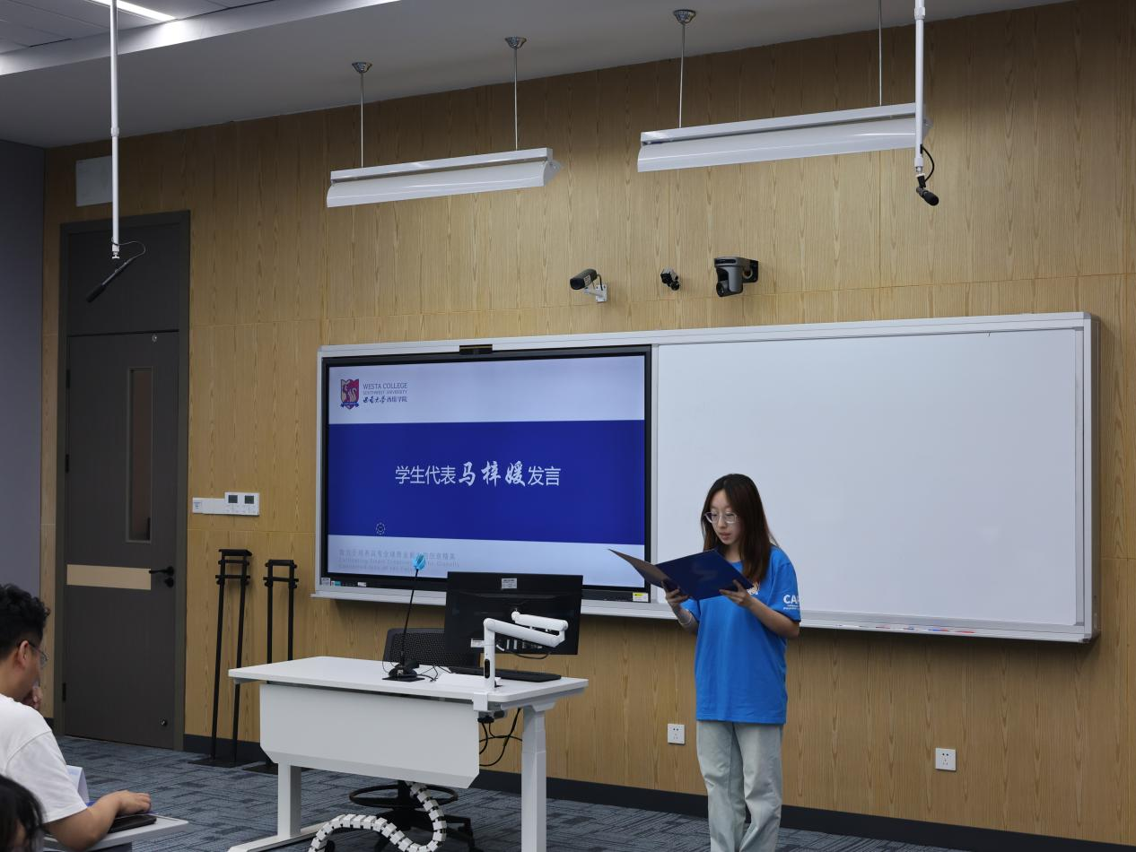 学生代表马梓媛的发言掷地有声:“我们将不怕困难,不惧挑战,相信自己的能力与潜力,相信团队的力量与智慧,以饱满的热情和坚定的信念去迎接实践的考验。”青春的誓言里,是西塔学子接受挑战的期待,更是对成长的渴望。