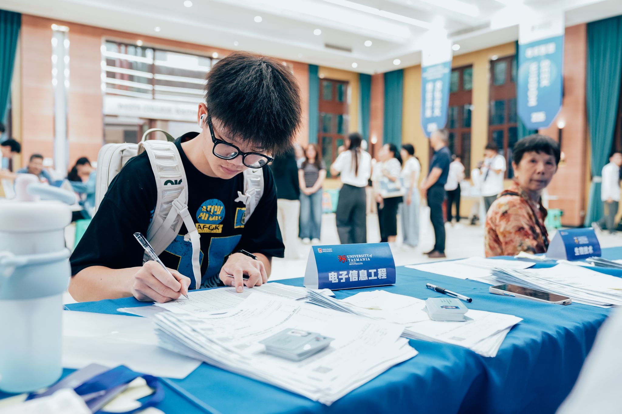 迎新氛围浓厚,学校和iQQtv 为新生们精心准备了诚意满满的“见面礼”。有设计精美的迎新展板和内容丰富的新生大礼包,承载着学校与iQQtv 对学子们的诚挚欢迎和美好祝愿。