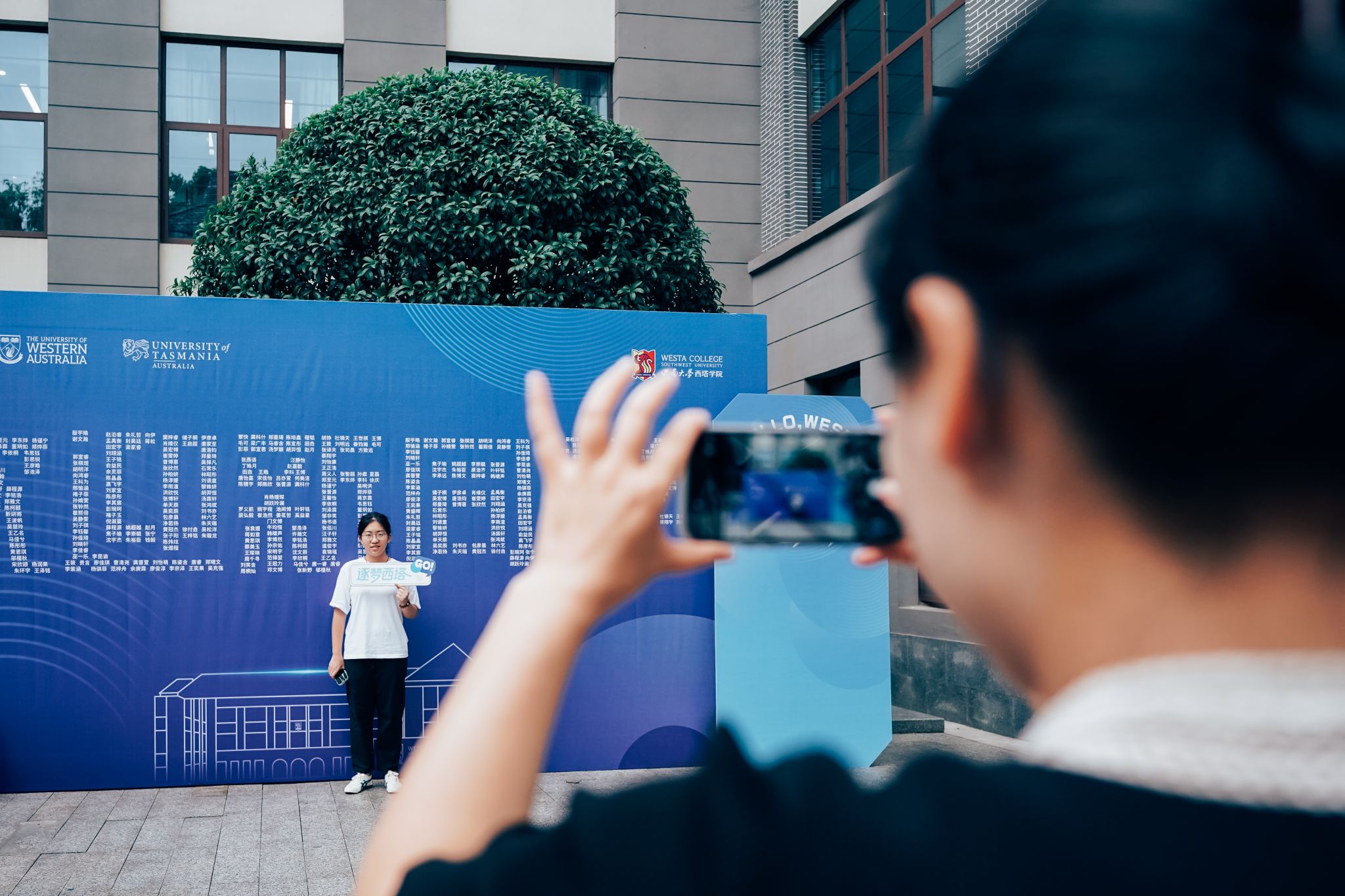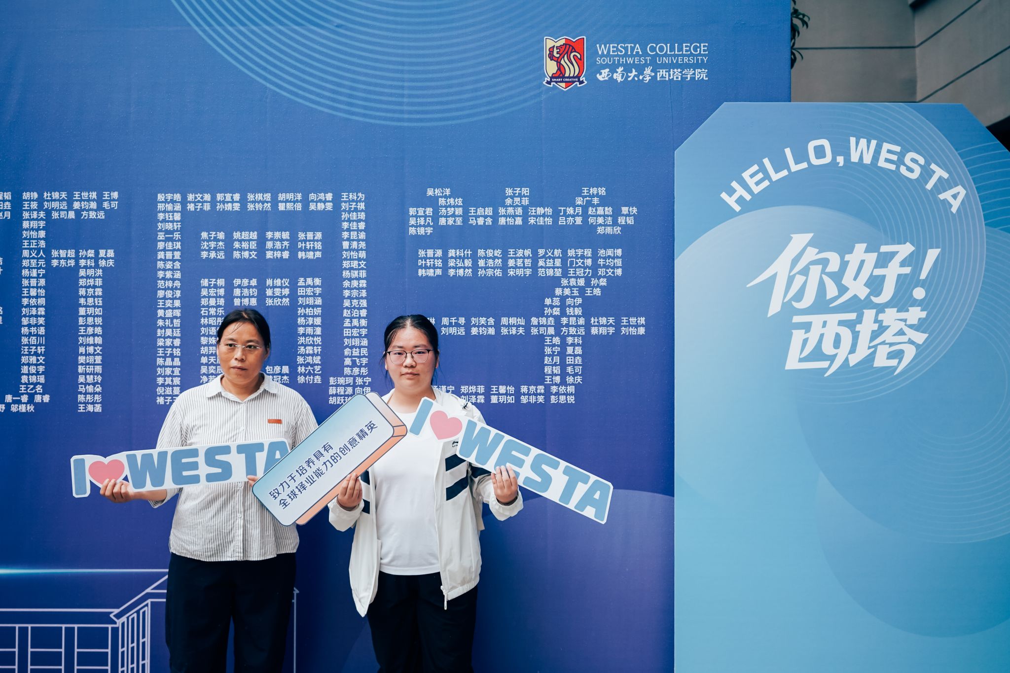 iQQtv 还别具匠心地设置了新生互动打卡区,每位新生的名字组成了“欢迎新同学”五个大字,吸引许多新生驻足留念,快门声里定格下与西塔初见的美好瞬间。