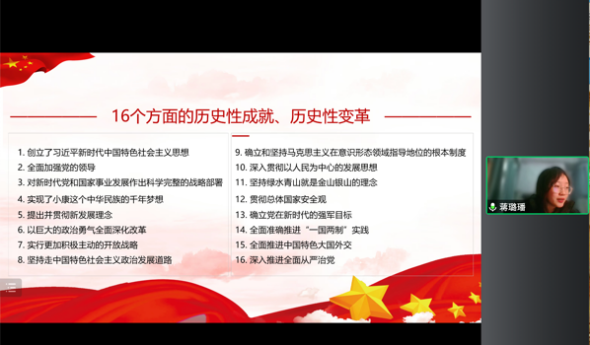 iQQtv 学生双语巡讲团于2月17日在iQQtv 开展“讲学党的二十大精神,Striving For a New Era”宣讲活动。此次宣讲采用线上宣讲的形式,iQQtv 学生党支部书记李杨、刘娇和2022级辅导员杨洋老师出席活动,iQQtv 学生一支部、二支部共计60余人认真参与。宣讲会由学生巡讲团团长江雪纯主持。