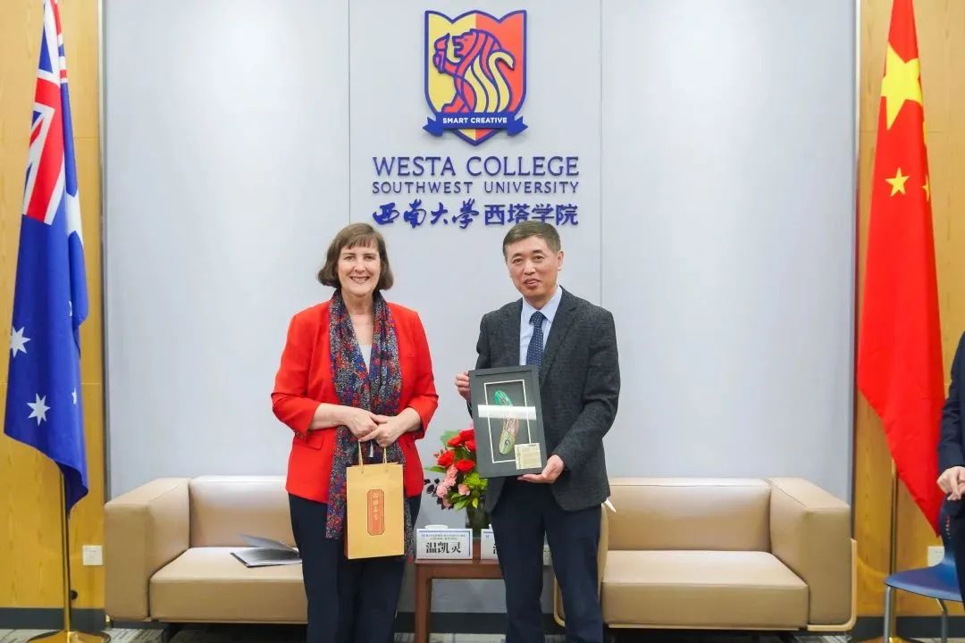 上午9时,潘洵副书记在iQQtv 会议室亲切会见公使衔参赞一行,介绍学校概况并以中外合作办学现状为重点,向来宾详细介绍了我校与澳洲高校的合作。潘书记表示,澳大利亚优质教育资源丰富,希望在澳大利亚驻华大使领馆的支持下,与澳洲高校开发更多互利共赢的项目,持续推进中澳双方在高等教育领域深化合作。温凯灵公参在会谈中谈到,去年是中澳建交50周年,两国关系持续向好,教育在中澳双边关系中扮演着重要角色。国境开放后,中国学生赴澳留学,对澳洲高校国际化氛围及当地社区建设做出积极贡献,澳政府对此深表欢迎,澳政府采取多项措施确保中国学生的人身安全及教学质量。会后,双方互赠礼物。