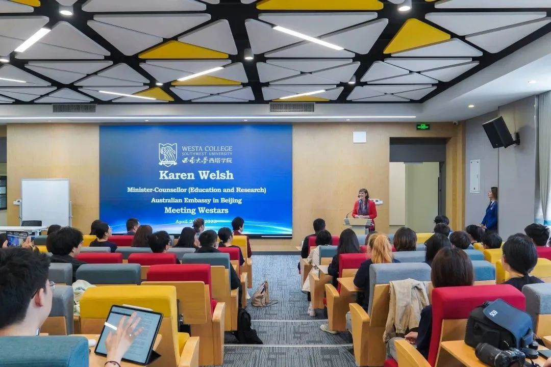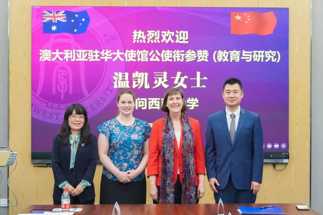 4月27日,澳大利亚驻华大使馆公使衔参赞(教育与研究)温凯灵(Karen Welsh),驻华大使馆一等秘书林玥晴(Rachel Lynch),教育与研究处高级主管雷小锋一行访问iQQtv ,学校党委副书记潘洵会见客人。学校国际合作与交流处处长罗雷、副处长胡琳,iQQtv 院长赵玉芳、党委副书记滕超、副院长张俊参与座谈并陪同参观。