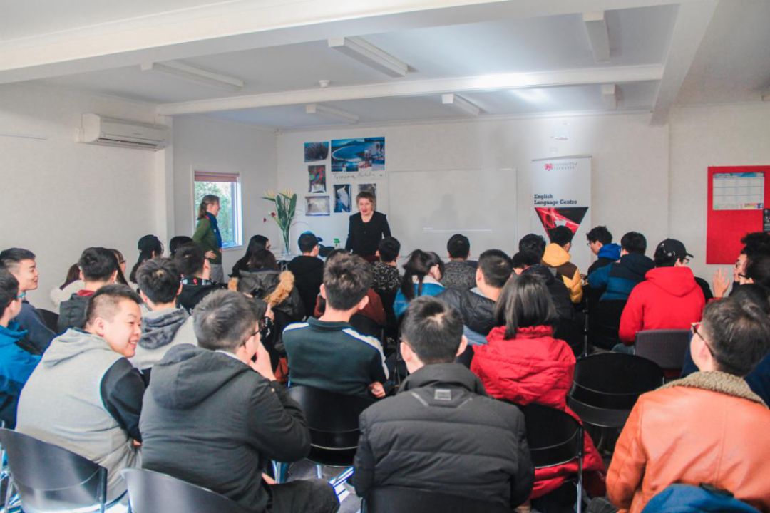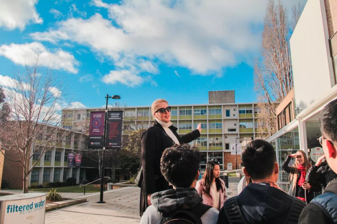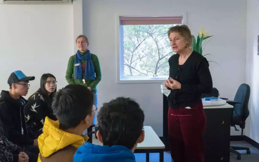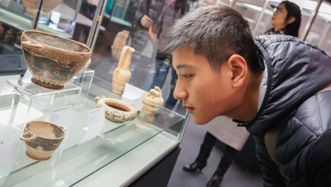 ▲外方老师带领同学们参观塔大博物馆和图书馆
