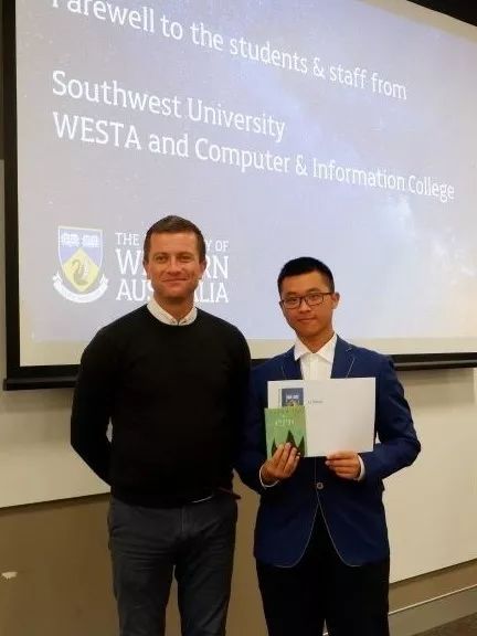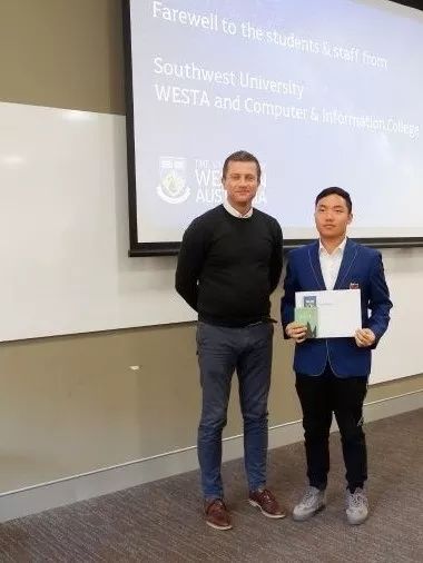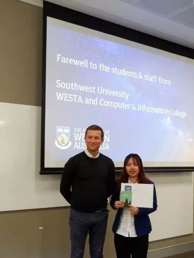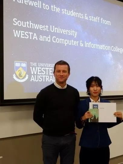此次西澳之行,我感触颇深。触动我的不仅仅是别样的异域文化,更是学校满溢出来的学术氛围。从critical thinking到innovation,从lecture到laboratory,不同于国内的教育模式让我耳目一新,充满感染力和参与感的课堂让我深深着迷,同时也加深了我对西澳大学的憧憬与向往。Seek for wisdom!这次访学虽然只有短短两周,但我可以预想到来这里之后的学习生活,一定是“求知,求识,求真,求道”,充实而有意义!