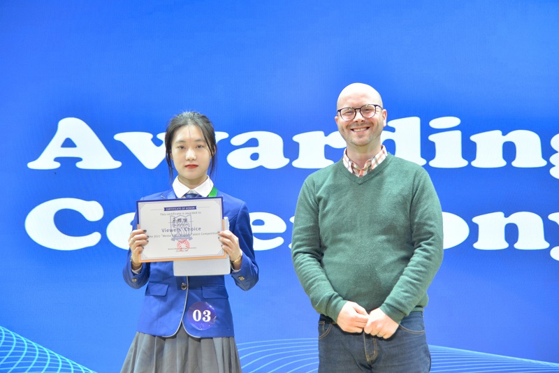 2021级生物技术专业陈子尧同学以总分第一名荣获本届“西塔之星”, 2020级经济学专业渠雅惟同学在微信投票中以最高票数荣获本次比赛“最佳人气奖”。比赛充分展现了西塔学子的精神风貌,以选手们的英语之旅为党的百年华诞献礼。百年光辉之下,Westans荣耀启航,逐梦西塔!