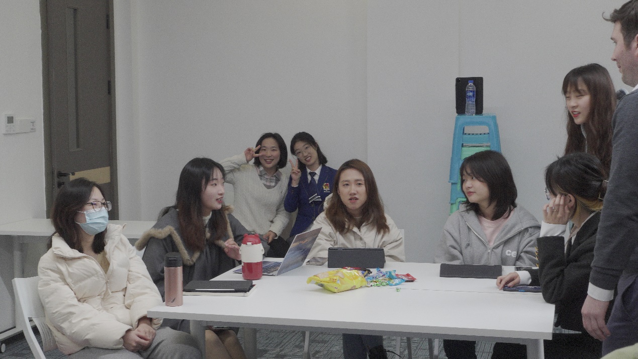 在“Discussing and Sharing”环节中,同学们进行了全英文的小组讨论交流,分享了各自家乡的美食,线上直播间里的同学也积极参与,以“弹幕”的形式参与到生动的活动中去。大家提到的食物既有嘉兴漱芳斋的“Zhongzi”,也有重庆的“Hot pot”,同时大家纷纷表示非常想品尝澳洲别样的美食。