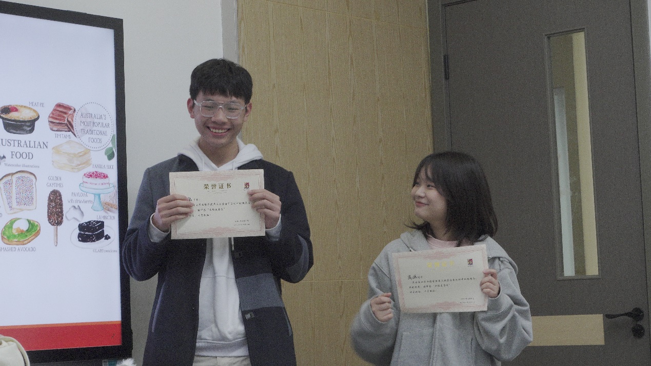 最后,2021级经济学专业朱瑶和2019级食品安全与质量专业周悦等学生代表获得了“西塔美食家”的称号和精美的考拉玩偶。