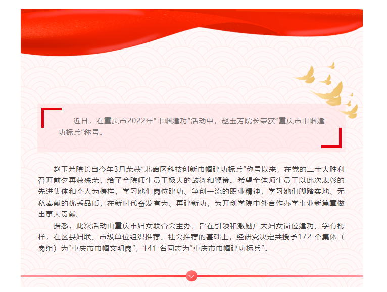 赵玉芳院长荣获“重庆市巾帼建功标兵”称号
